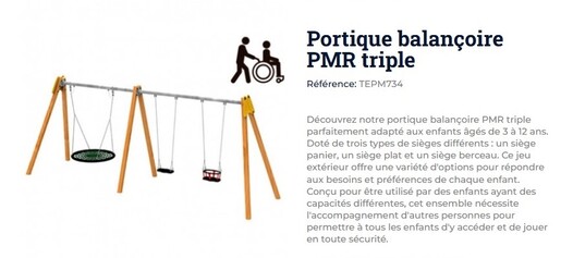 Installation d'un portique balançoire inclusif adapté aux 3/12 ans aux abords de l'école des Tauzins doté de 3 types de sièges différents: un siège panier, un siège plat, un siège berceau. Ces balançoires sont conçues pour être utilisées pour des enfants ayant des capacités différentes.