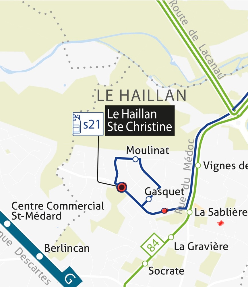 • Arrêt au fond du parc Saint Christine (anciennement arrêt TBM parc Saint Christine). C’est un arrêt très emprunté. L’espace du bois de Sainte Christine permet de créer l’abris. Il est également sur le trajet du bus S21.
